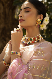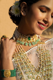 Each piece in the Shagna collection tells a story—a story of regal splendor, of intricate craftsmanship, and of a timeless tradition passed down through generations. The rich hues of vivid gemstones, set in the gleaming, creates a visual symphony that resonates with the beauty of Indian heritage.